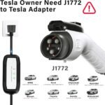 Tesla models require a J1772 to Tesla adapter (not included)